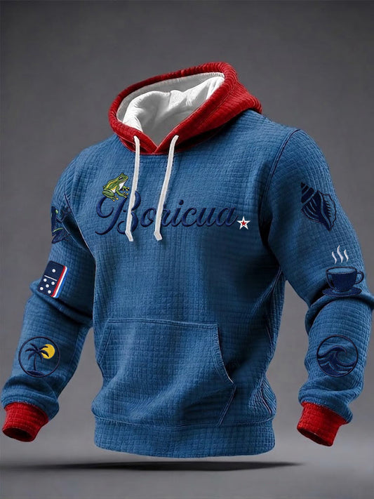 Men's Puerto Rico Printed Checkered Cotton Hoodie