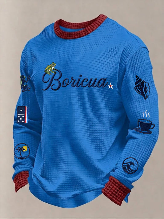 Men's Puerto Rico Printed Waffle Long Sleeve Sweatshirt