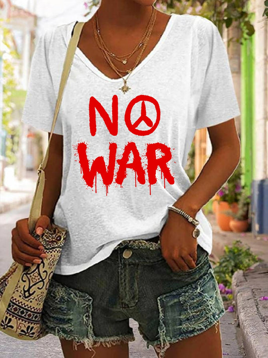 Women's No War cotton V-neck T-shirt