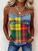 Women's Classic Plaid Pattern Denim Patchwork Tank Top