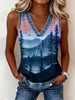 Women's Felt Art Landscape Pattern Denim Patchwork Top